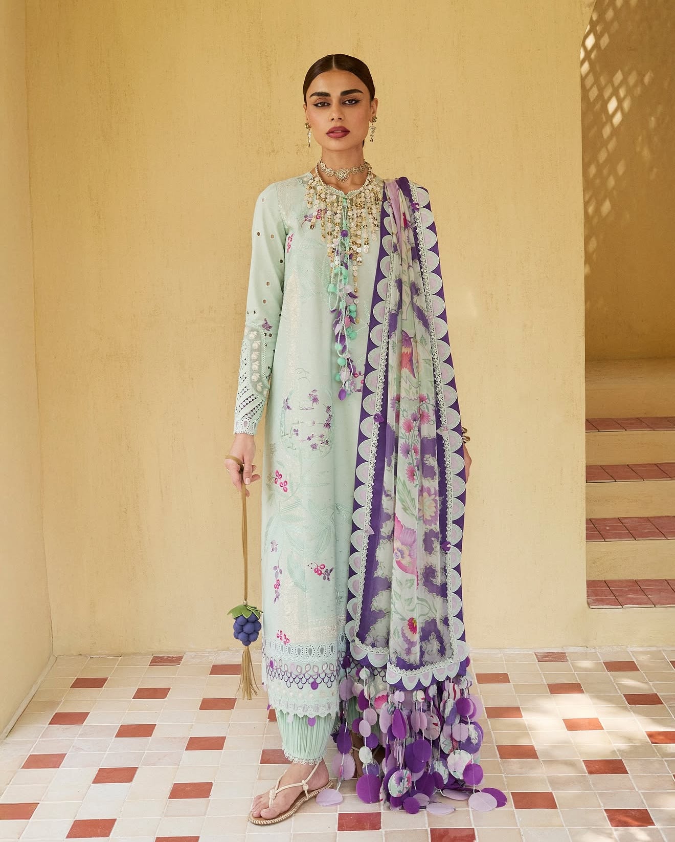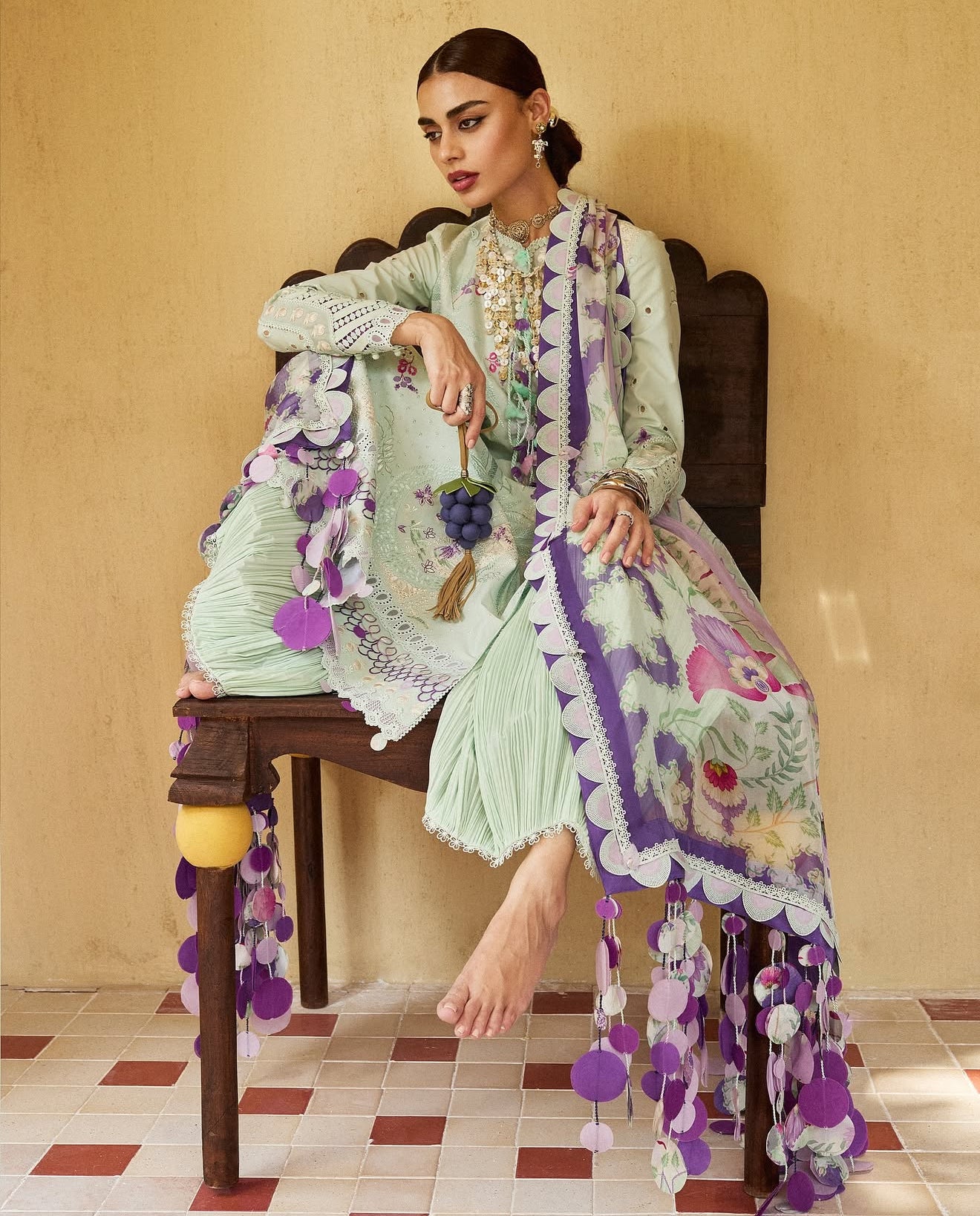 Disclaimer: Suffuse Lawn meticulously stitched by Atelier by Saima. Laces could be slightly different to the professional stitching shown in pictures as these outfits come unstitched.