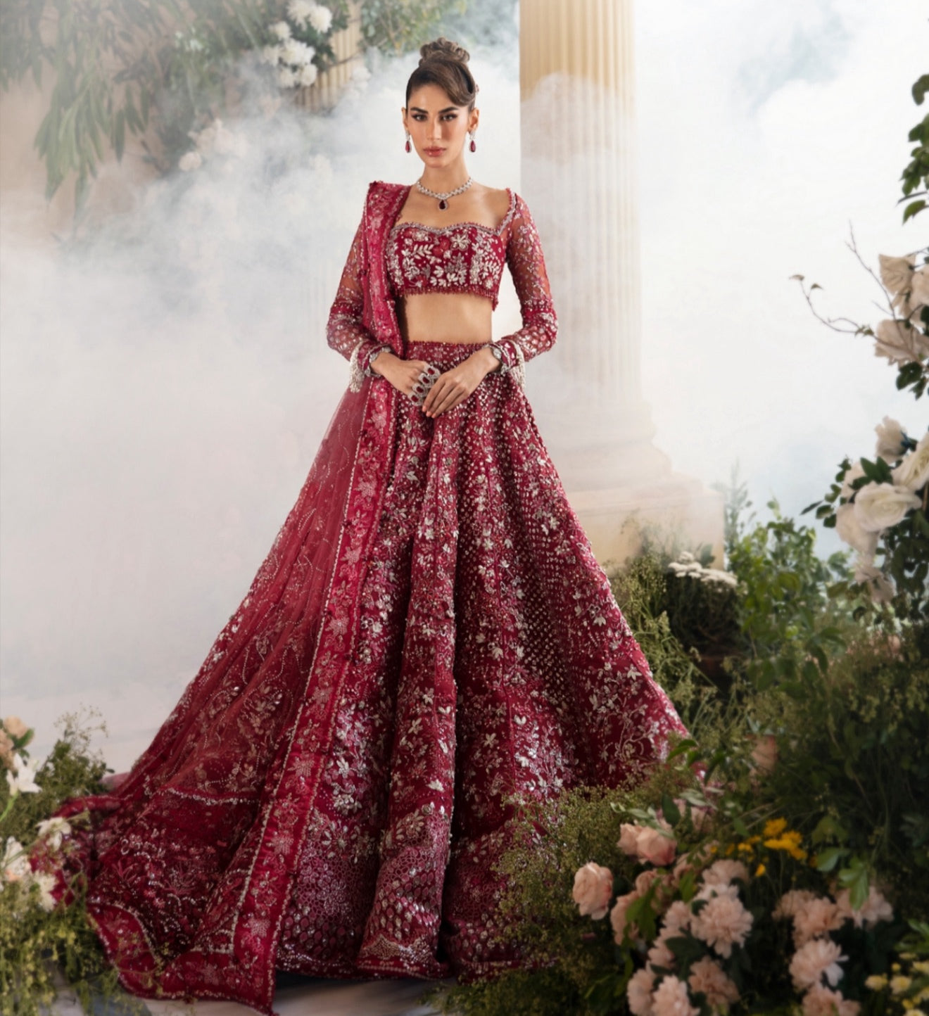 Includes: Anarkali top ( modestly stitched), Lehnga & Dupatta