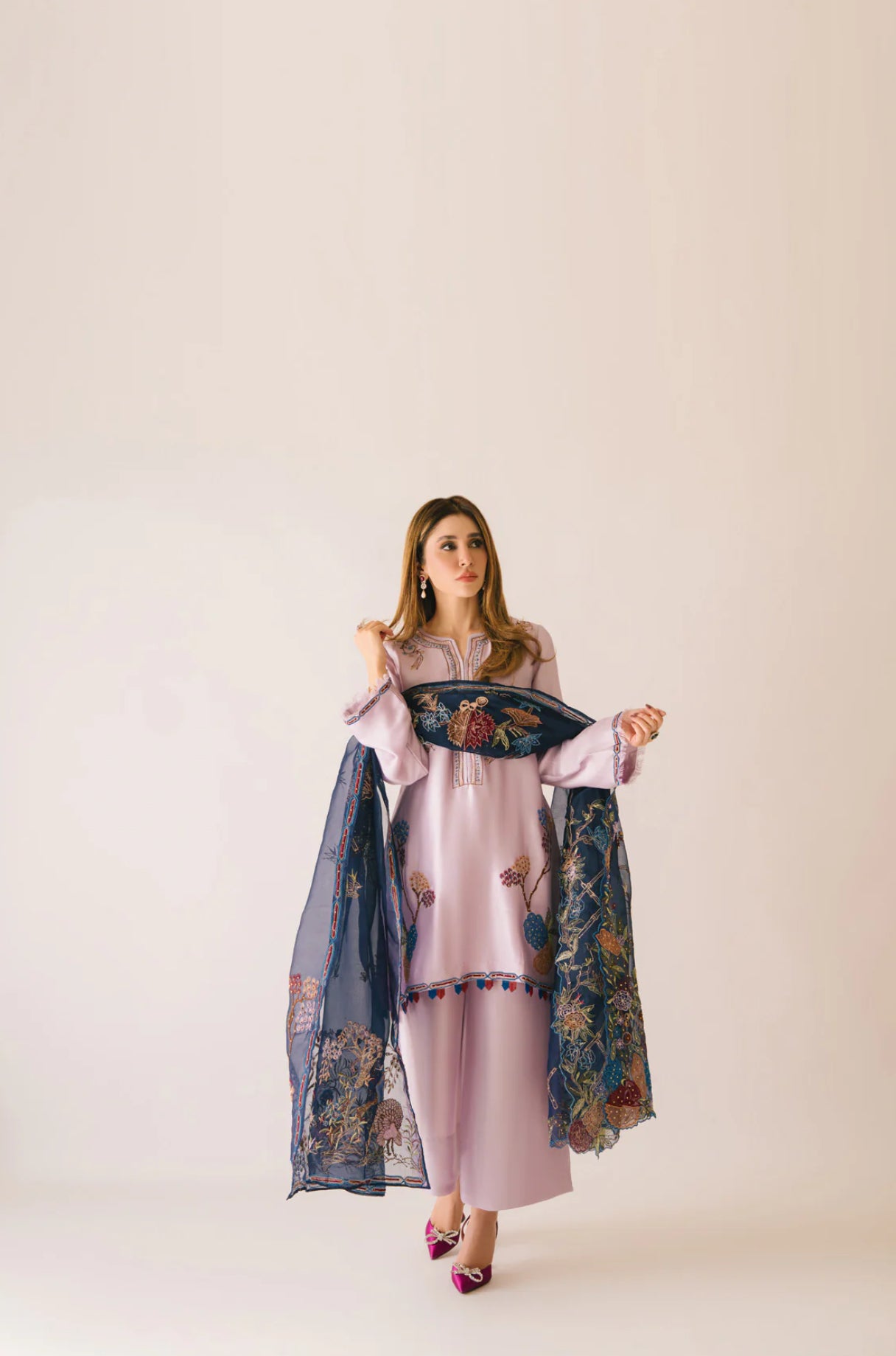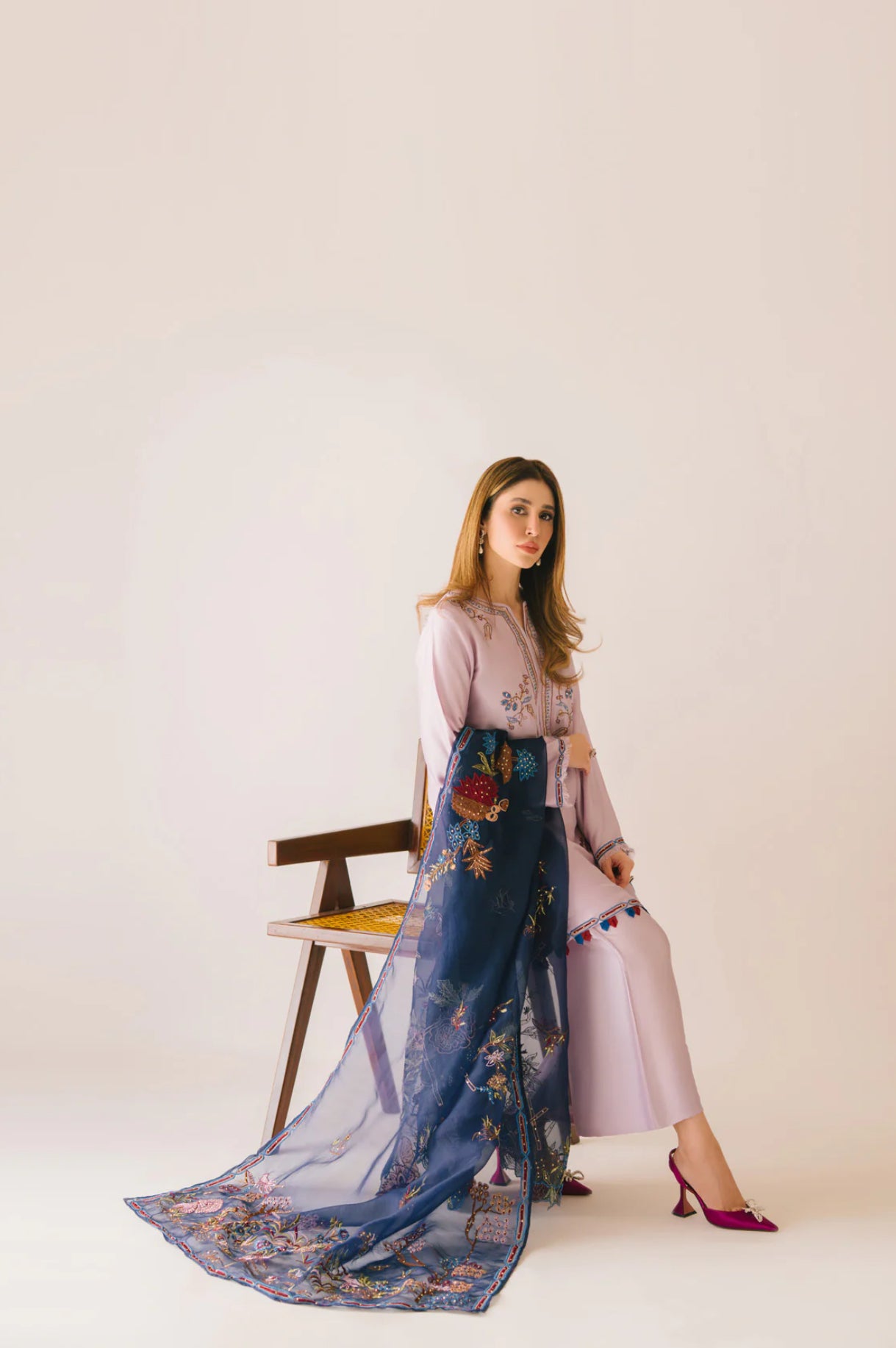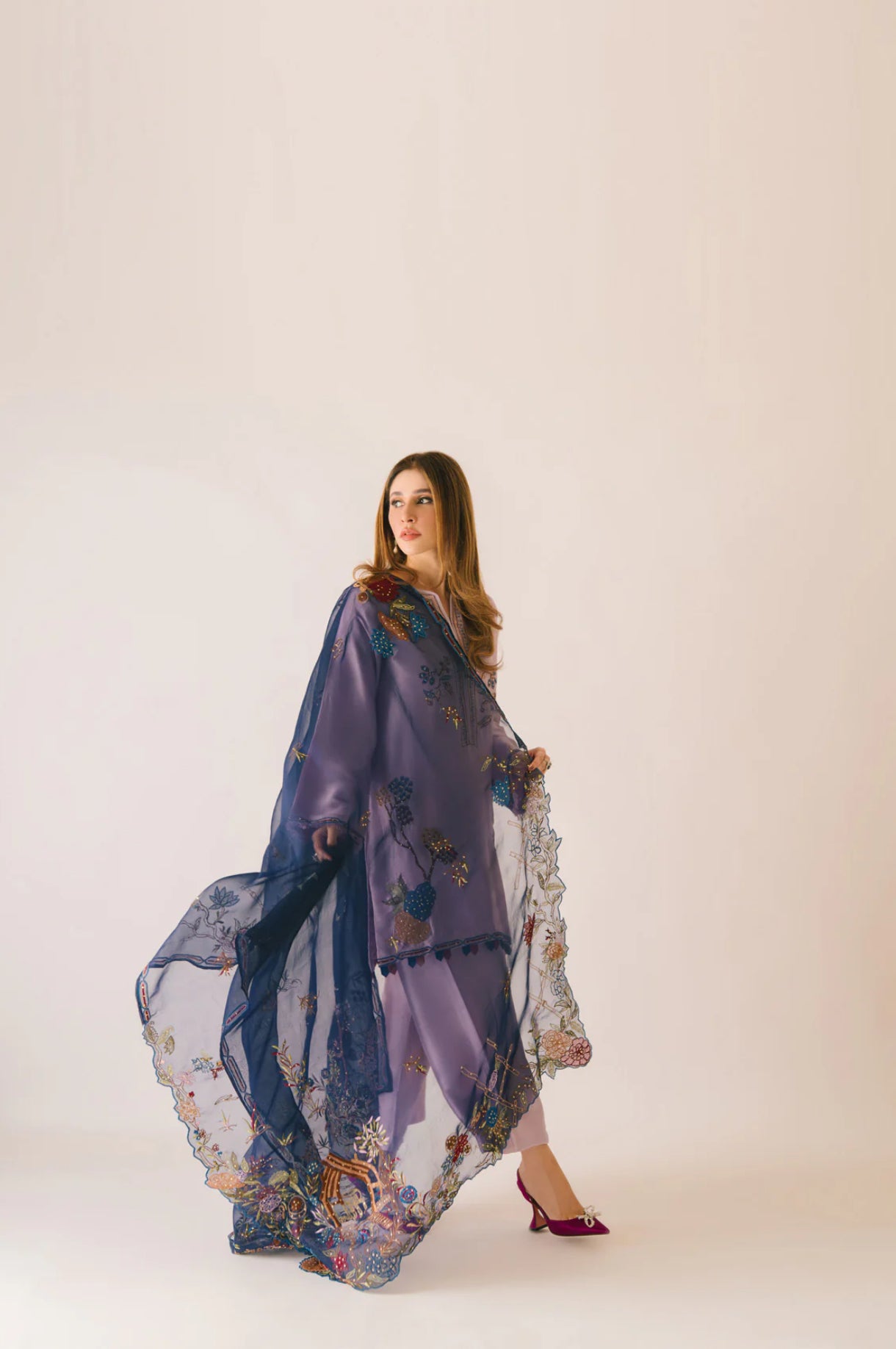 Dupatta is pure medium organza full of multi thread embroidery, appliqué work and sequins spray.